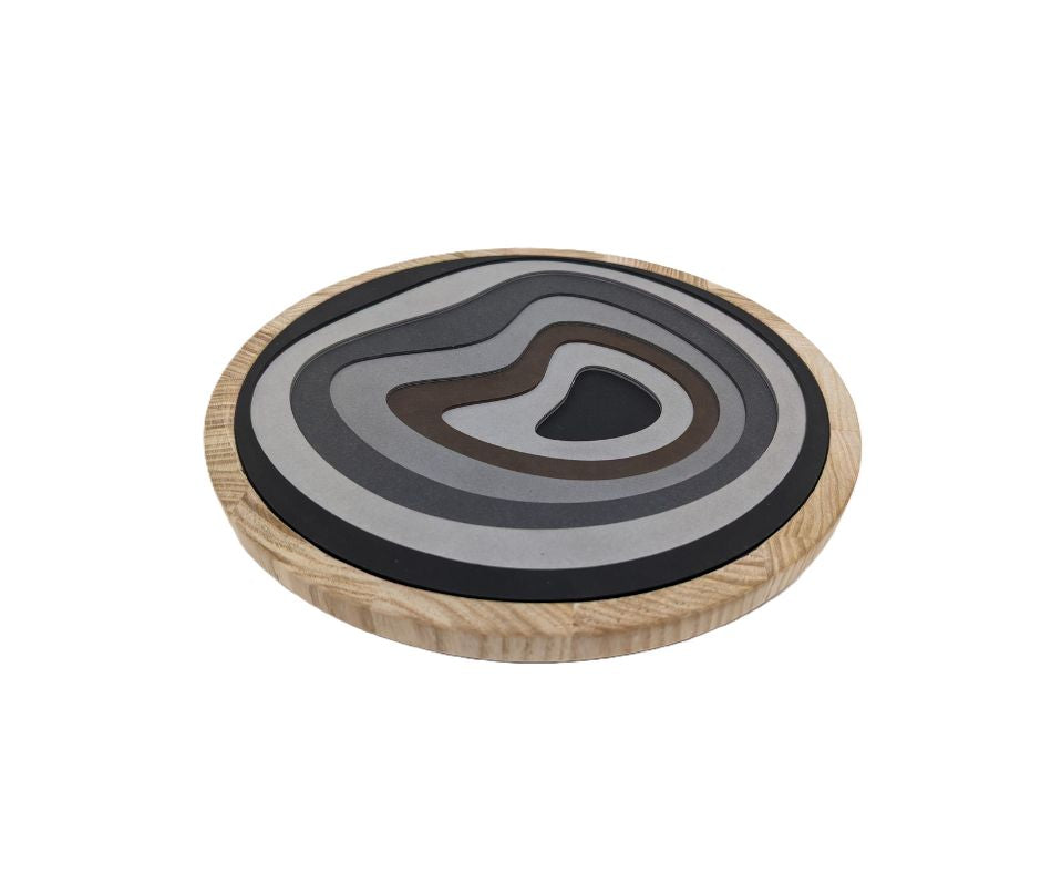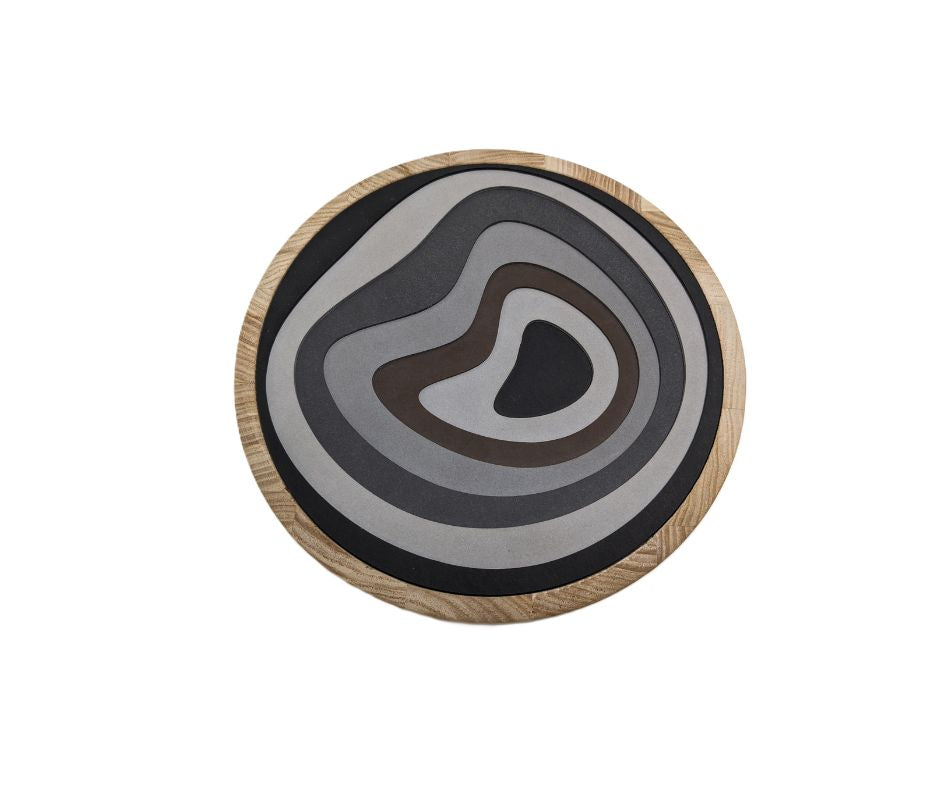 Lo Svuota Tasche M 42 della linea Re- Wood reinterpreta un oggetto quotidiano con il linguaggio del design sostenibile. Le forme pure e le proporzioni misurate valorizzano la matericità del PaperStone®, disponibile anche in versione combinata con frassino sbiancato.